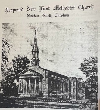 On March 25, 1884, a cyclone (tornado) hit the southern part of Newton. The Methodist Church was destroyed. The wind moved the church from its foundation about six feet, the floor remained but all else was blown away. Miraculously, the Bible and the Altar remained in place. A marble topped table and several church pews were salvaged, as was the church bell. These treasures became the symbols of perseverance and dedication to the faith of the congregation in moving forward.